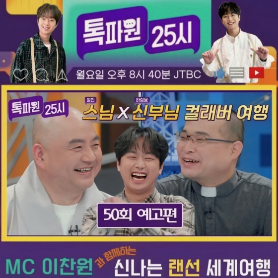 2월 20일 방송하는 JTBC '톡파원 25시'에서는 성진 스님, 하성용 신부와 함께 종교 힐링 투어가 펼쳐진다.