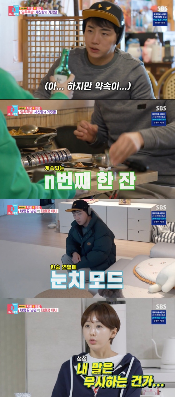 한영은 박군에 "한 4시간 걸린 것 같다. 술 마시는 걸 뭐라고 하는 건 아니다. 근데 나한테 '지금 가'라고 '술 안 마셔'라고 거짓말하지 말아야지"라며 언성을 높였다. 이어 한영은 "나는 좀 기분이 나빠. '왜 나한테 말을 한 걸 안 지키지?' 이런 생각이 들어. '내가 하는 말은 무시하는 건가?'생각이 들어"라며 서운해했다.