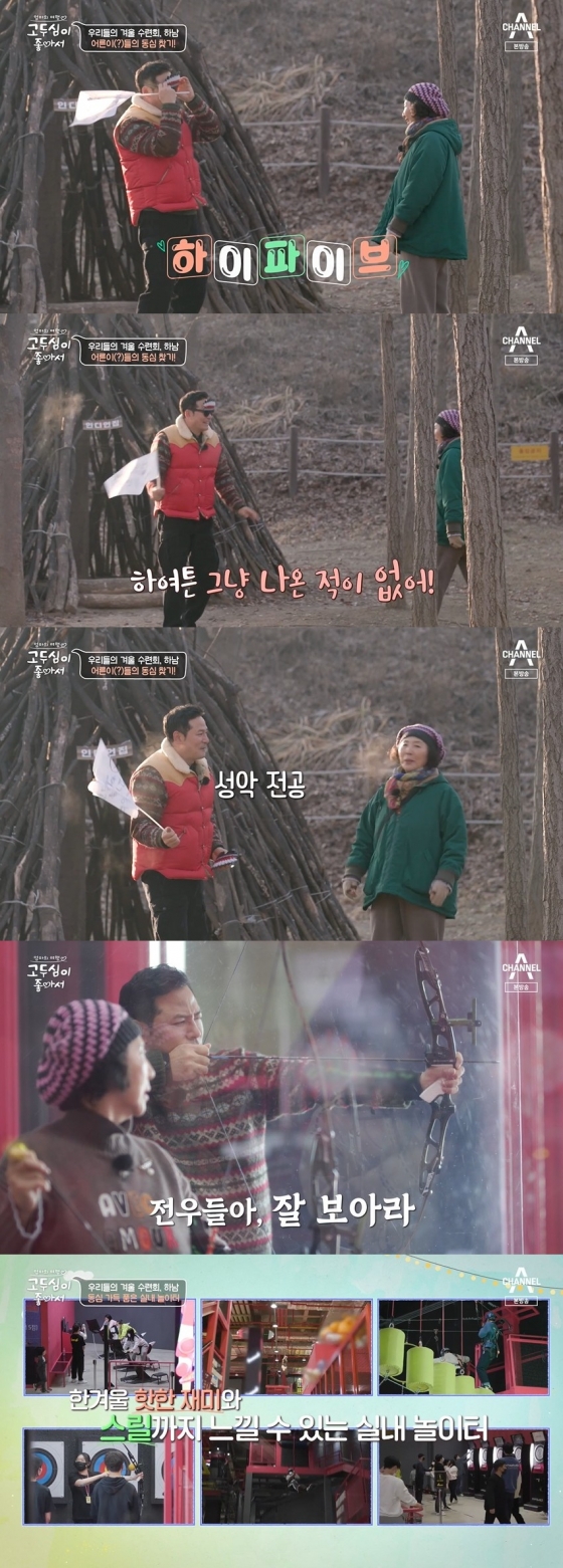 이날 숲속에서 현란한 소리와 함께 등장 김창옥을 본 고두심은 "하여튼 그냥 나온 적이 없다"라며 유쾌하게 웃었다. 흰 깃발을 들고나온 김창옥은 "오늘 고두심이 좋아서 겨울 수련회다"라며 입으로 호루라기 소리를 냈다.