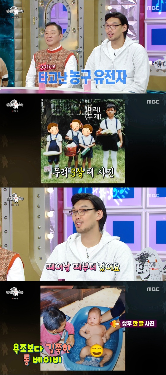 이날 MC 안영미는 하승진에 "태어날 때부터 농구선수 할 운명이었다고"라고 물었다. 하승진은 "저는 선택권이 없었다. 태어난 것도 크게 태어났다. 5.6kg로 태어났다. 누나는 5.7kg다. 둘 다 자연분만이다"라고 말해 놀라움을 안겼다.