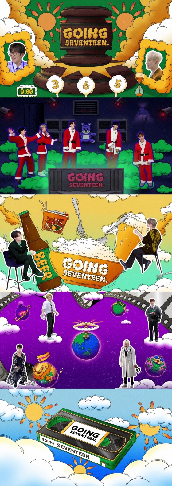 영상에는 '토크 회식', 'GOOD OFFER', '쌀밥을 맛있게 먹는 완벽한 방법', '8월의 크리스마스', '순응특집 단짝', '겨울방학 특집 : 안다와 몰라', '디에잇과 12인의 그림자' 등 '고잉 세븐틴'의 인기 에피소드 속 세븐틴의 활약상이 담겼다.
