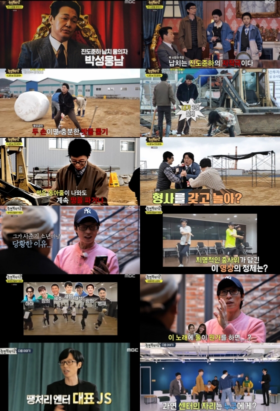 25일 방송된 MBC 예능 '놀면 뭐하니?'(연출 박창훈, 김진용, 장우성, 왕종석, 이민재/작가 최혜정)에서는 '놀뭐 경찰서' 형사들이 진도준하(정준하) 납치극의 전말을 밝혀내는 장면이 그려졌다. 이와 함께 유재석의 휴대폰 속에 잠들어 있던 비밀 춤 영상과 개인 소장한 음원이 공개되며, 새로운 프로젝트를 향한 기대감을 높였다.