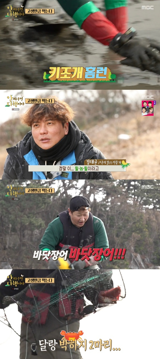 이날 먹보 삼대장은 낙지를 잡기 위해 갯벌로 향했다. 김태균은 "나는 다리가 계속 들어가고 있어"라고 전했다. 현주엽은 갯벌에 빠진 김태균을 보며 "너 지금 서있는 거야?"라며 깜짝 놀랐다. 김태균은 "다리가 계속 들어가"라며 힘겨워했다.
