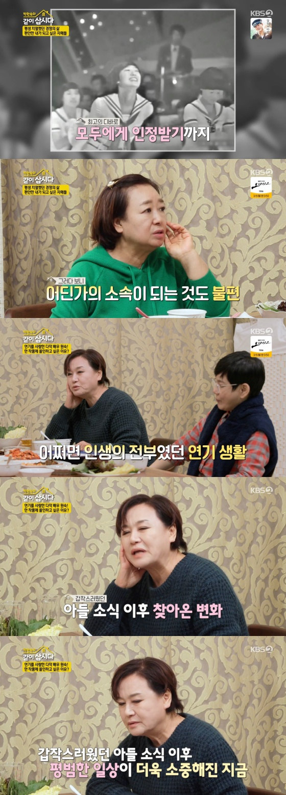 '박원숙의 같이 삽시다' 박원숙이 아들의 사고 이후 연기에 올인하는 게 부담스럽다고 전했다.