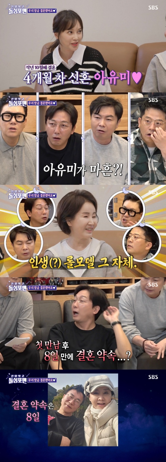 이후 아유미가 자신을 소개했다. 아유미는 "10월 30일에 결혼했다. 신혼이다"라고 알렸다. 탁재훈은 "아유미는 결혼 안 할 줄 알았다"라고 말했다. 이상민은 "귀여운 동생 같은 아이였는데 결혼한다고 하니까 더 늙은것 같다"고 전했다. 아유미는 "저도 결혼을 할 거라는 생각을 안 했다. '난 안 하고 죽겠구나' 했다"고 말해 웃음을 안겼다. 선우은숙은 아유미에 "몇 살이야?"라고 물었다. 아유미는 "저 40살"이라고 밝혀 충격을 안겼다.