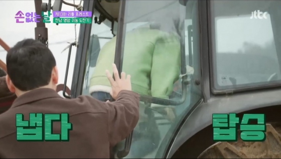운전면허만 있으면 할 수 있다는 의뢰인 시아버지의 말에 한가인은 바로 트랙터에 탑승했다. 그는 시아버지의 안내에 따라 직접 운전을 하며 열정적으로 배우는 모습을 보였다.