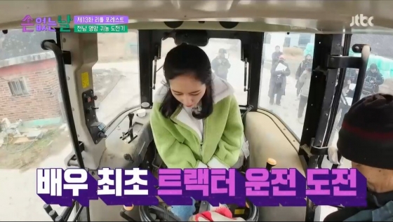 '손 없는 날' 한가인이 트랙터를 운전했다.
