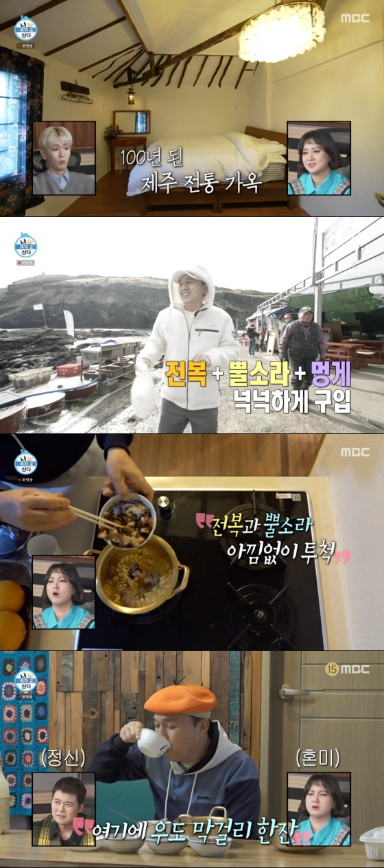 숙소에 홀로 남은 김광규는 냄비에 물을 끓여 라면을 요리했다. 김광규는 미리 시장에서 사 온 전복과 뿔소라를 라면에 아낌없이 넣었다. 박나래는 "너무 고급 지다. 얼마짜리 라면이야"라며 감탄했다. 김광규는 해산물을 먹고 우도 땅콩 막걸리를 마시며 행복해했다. 이후 자신이 끓인 해물라면을 먹으며 "누가 함께 있었으면 주거니 받거니 좋았을 텐데"라며 아쉬워했다.