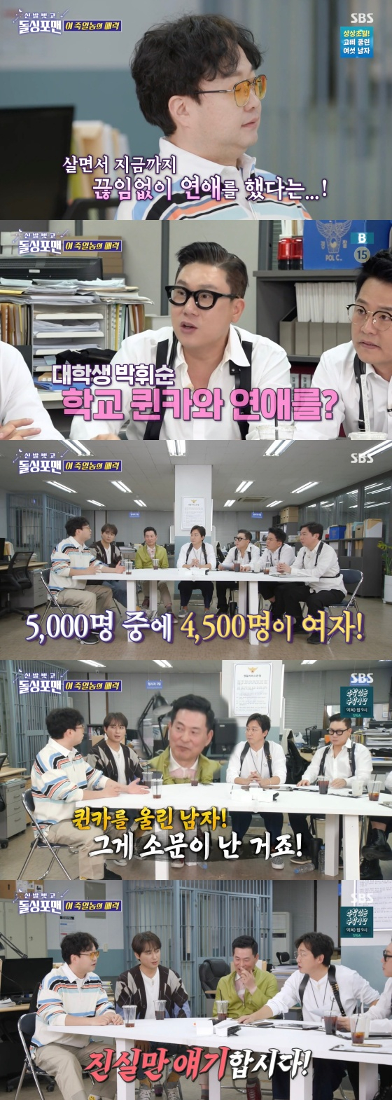 이상민은 박휘순에 "대학 퀸카와 연애를 했다고"라고 재차 물어 궁금증을 자아냈다. 박휘순은 "고등학교 시절 연애를 한 번도 못하고 대학을 진학했는데 막상 들어간 학교가 보건대였다. 5000명 중에 4500명이 여자다. 조금만 얘기해도 깔깔거리더라"라고 전했다.