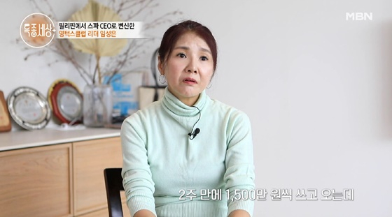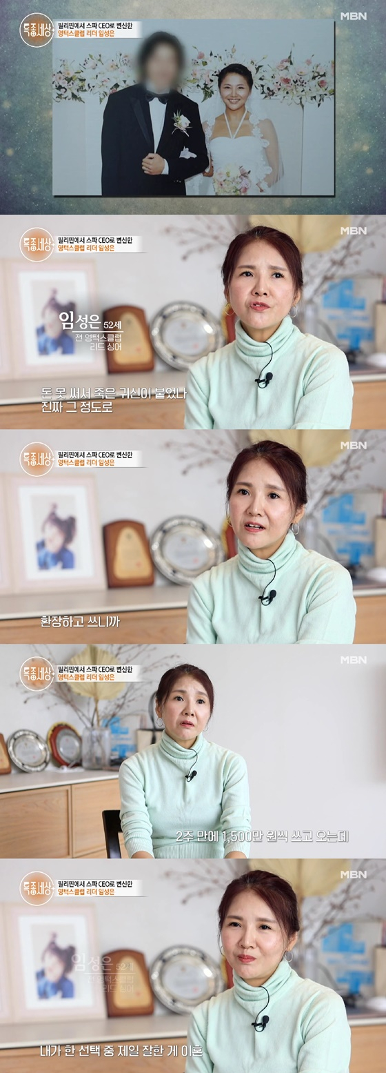 이날 임성은은 필리핀 보라카이에서 스파 리조트를 운영 중인 근황을 전하며 전 남편에 대해 언급했다. 그는 "(전 남편이) 돈을 못 써서 죽은 귀신이 붙었나 싶더라. 환장을 하고 (돈을) 썼다"고 말했다.