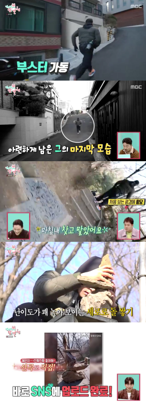 이어 공개된 유태오의 일상은 동네를 달리는 것으로 시작됐다. 제작진은 전속력으로 달려 가는 유태오에 당황하며 열심히 그를 쫓아갔으나 유태오는 기어코 카메라 밖을 벗어나 스튜디오를 폭소케 했다. 제작진은 결국 촬영을 포기하고 10분간 그를 따라잡기 위해 달려갔고, 산 입구에서 겨우 만나 웃음을 더했다.