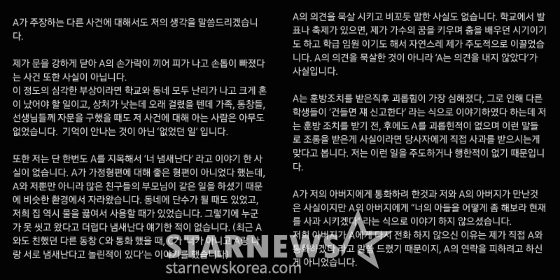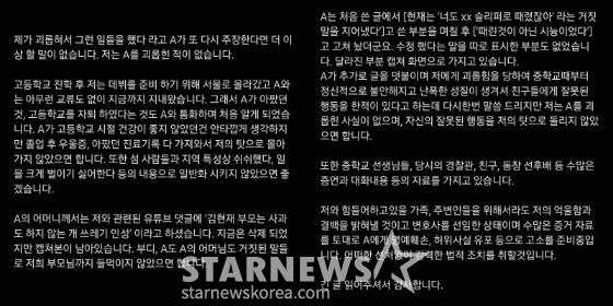 또 그는 "부디, A도 A의 어머님도 거짓된 말들로 저희 부모님까지 들먹이지 않았으면 합니다"라고 했다.