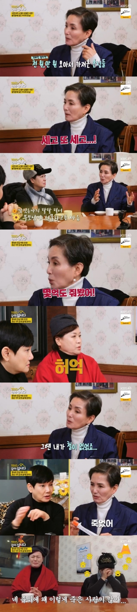 안소영은 안문숙이 몇 억을 빌려줬던 지인과 연락하며 지내고 있는지 궁금해 하자 "죽었어"라고 말해 웃음과 안타까움을 동시에 자아냈다.