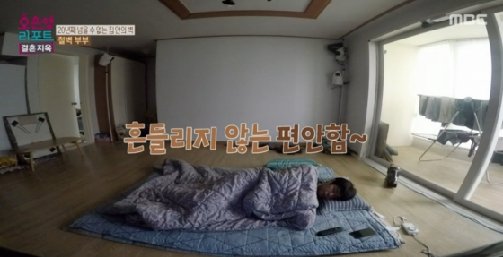 영상에서 남편은 아침 일찍 거실에서 출근 준비를 했다. 아내의 방은 문이 잠겨 있었다. 이후 남편은 쓰레기봉투를 들고 출근했다. 남편은 "사는 게 힘들다"라고 혼잣말을 하고 운전하며 출근했다. 남편은 자동차 부품 만드는 회사에서 현장 관리 감독을 하며 하루 8시간에서 10시간 정도 일한다고 말했다.