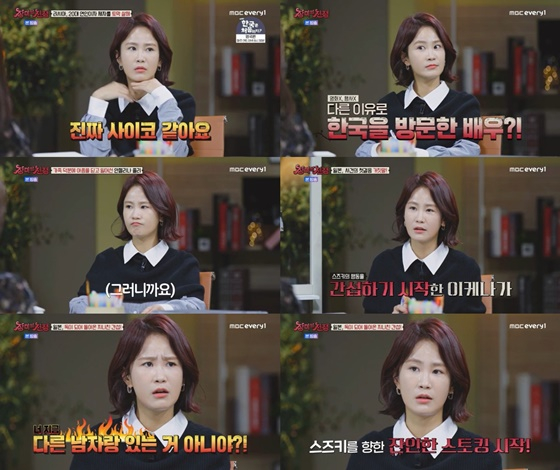 김지민은 20일 방송된 MBC에브리원 예능 프로그램 '장미의 전쟁'에서 일본의 한 남성이 저지른 디지털 성범죄 '리벤지 포르노' 사연에 프레젠터로 활약하며 흥미진진한 스토리를 들려줬다.