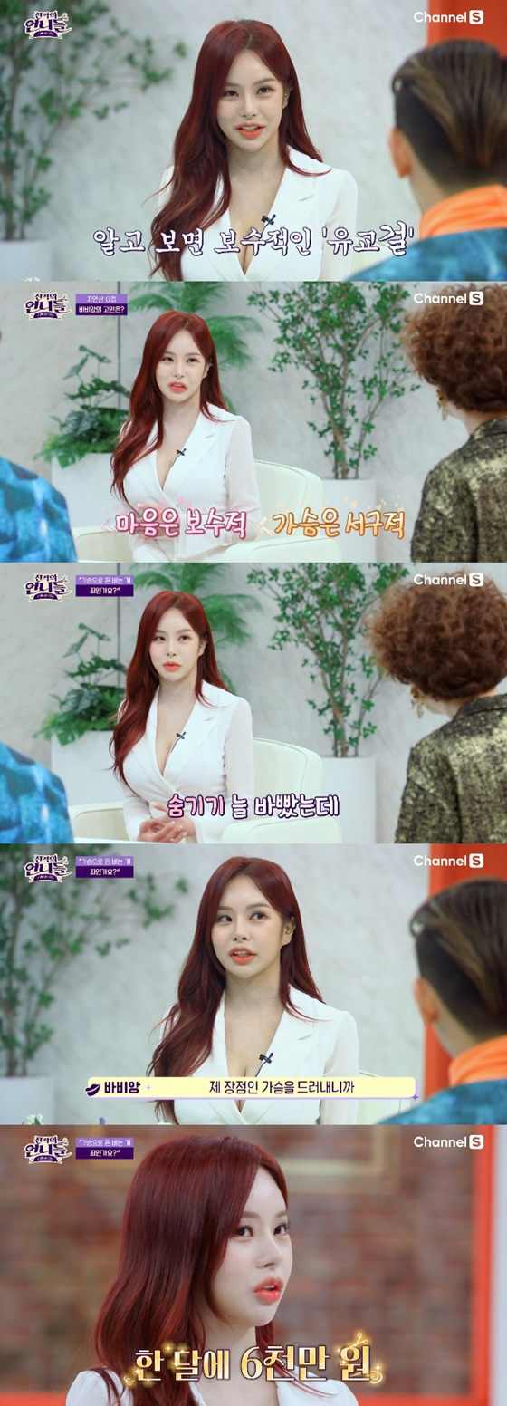 바비앙은 '진격의 언니들'에서 "가슴으로 돈을 버는 게 죄인가요?"라고 고민을 털어놓았다.