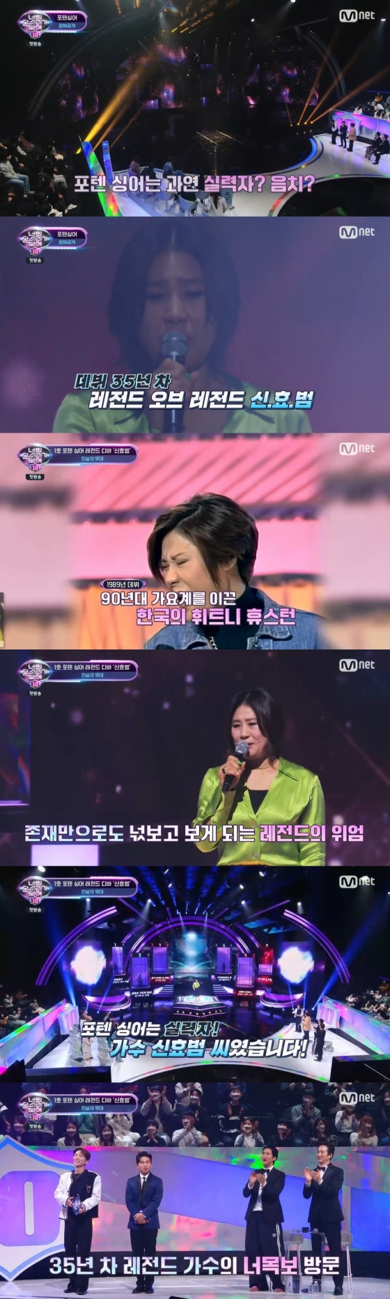 22일 첫 방송된 엠넷 예능 프로그램 '너의 목소리가 보여10'에서 가수 신효범이 1호 포텐싱어로 등장해 모두를 놀라게 했다.