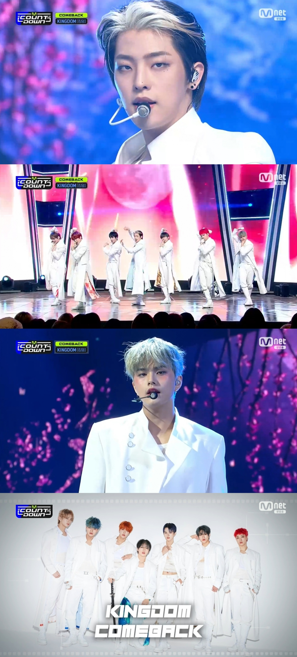 이날 킹덤은 댄디한 무드의 화이트 수트를 착장하고 등장, 신비로우면서 매혹적인 자태로 단숨에 눈길을 사로잡았다. 웅장한 사운드의 전주가 시작되자 멤버들은 눈빛에 카리스마를 짙게 장착했다.