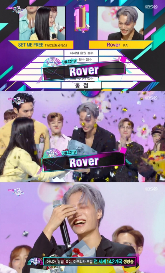 이날 1위 후보로는 트와이스의 '셋 미 프리'(SET ME FREE)와 카이의 '로버'(Rover)가 올랐다. 1위 트로피 주인공은 카이에게로 돌아갔다. 카이는 "일단 1위할 생각을 못했다. 소감을 준비하지 못했다"라고 떨리는 목소리를 전했다.