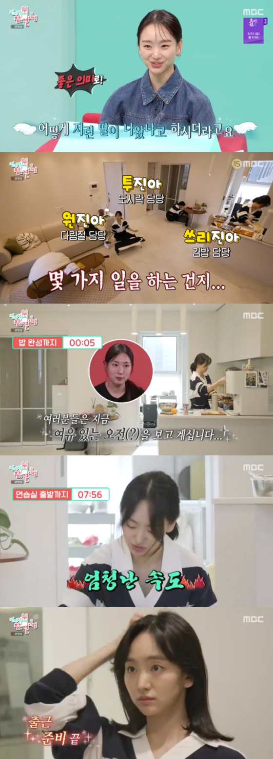 원진아 매니저는 이날 원진아가 처음으로 연극 '파우스트'에 데뷔하게 됐다며 "드라마 촬영할 때는 이른 시간에 나가다 보니 아침을 간단히 먹었는데 이제는 오전에 여유가 많이 생겨서 제대로 식사하시는 것 같다"고 밝혀 기대감을 모았다. 하지만 원진아의 아침은 여전히 1분, 1초도 쉬지 않고 설거지, 간식 챙기기, 점심 도시락 싸기 등 수많은 일로 가득 차 있었다.