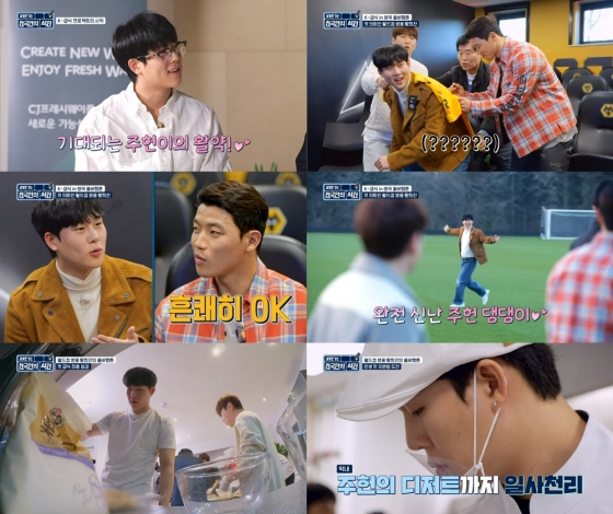 황희찬이 등장하자 주헌은 "축구를 너무 좋아한다"며 직접 준비한 유니폼을 꺼내 사인까지 받았다. 또 1군 훈련장 투어를 하며 잔디밭에서 해맑게 뛰어다니는 등 막내미를 발산하며 밝은 에너지를 전했다.