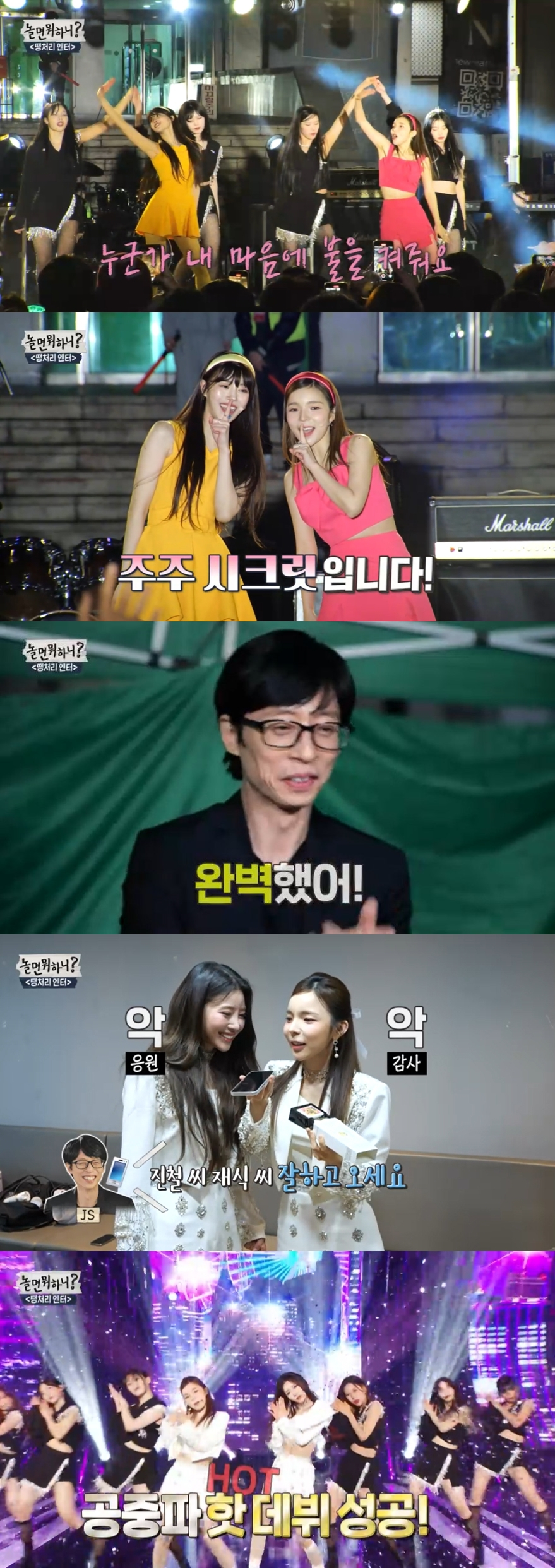 25일 방송된 MBC 예능프로그램 '놀면 뭐하니?'에서는 JS(유재석) 대표의 응원을 받고 대학 행사 무대와 '쇼! 음악중심'에서 데뷔하는 주주 시크릿(박진주, 이미주)의 모습이 그려졌다.