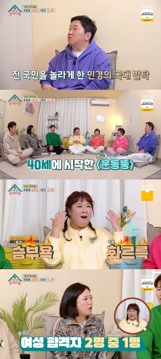 김민경은 "감독님이 '우리 자격증도 따보는 거 어때요'해서 '그 정도까지는 아니다'했다. 그랬더니 '누나가 못 딸 수도 있어요'했다. 절 자극하더라. 두 번 떨어지고 세 번 만에 취득했다"고 전했다. 이어 "감독님이 '대회도 나가보죠?' 했다. 그래서 '이건 오버야'했다. 그랬더니 '누나한테 기대하는 거 아무것도 없다' 하더라. 그래서 '누가 내 나이에 이런 경험을 해보겠어' 해서 나가보자 결심했다"며 당당히 국가대표 선발전에 합격했던 사실을 알렸다.