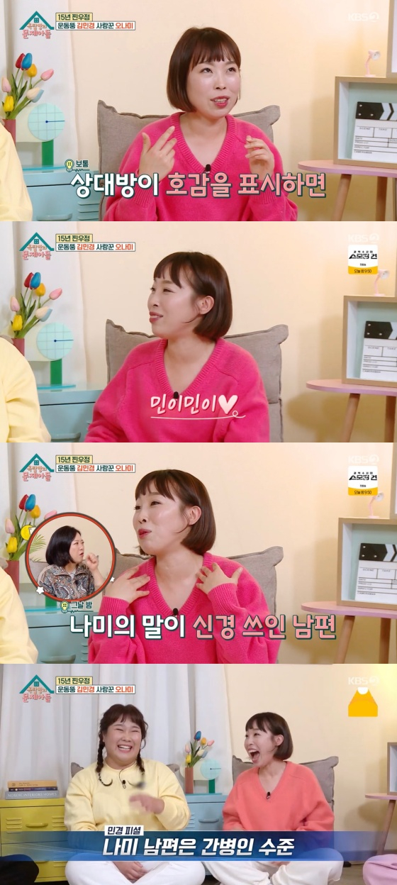 이날 오나미는 남편 박민에 대해 이야기했다. 오나미는 처음 박민이 자신에게 호감을 표하자 장난인 줄 알았다며 의심했다. 오나미는 "예상과 너무 달랐다. 약속을 잡을 때도 '저는 수요일, 금요일 된다' 하면 '그럼 수요일, 금요일 둘 다 만나자'고 하더라"라며 적극적이었다고 전했다.