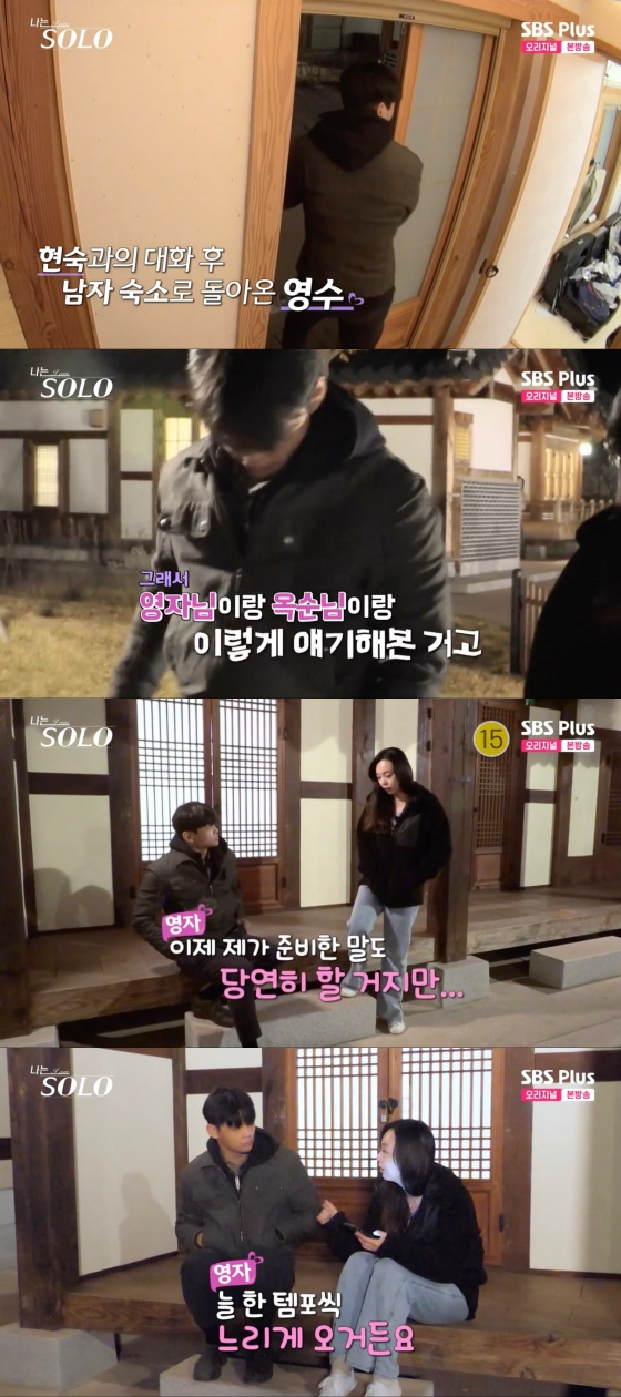이후 영자는 남자 숙소로 돌아온 영수에 "영수님 저 영수님 찾아온 건데"라며 말문을 열었다. 영수는 영자에 "그럼 나가서 산책 좀 하죠"라고 제안했다. 영자는 "휴지를 챙겨야 할 수도 있어"라며 휴지를 들었다.