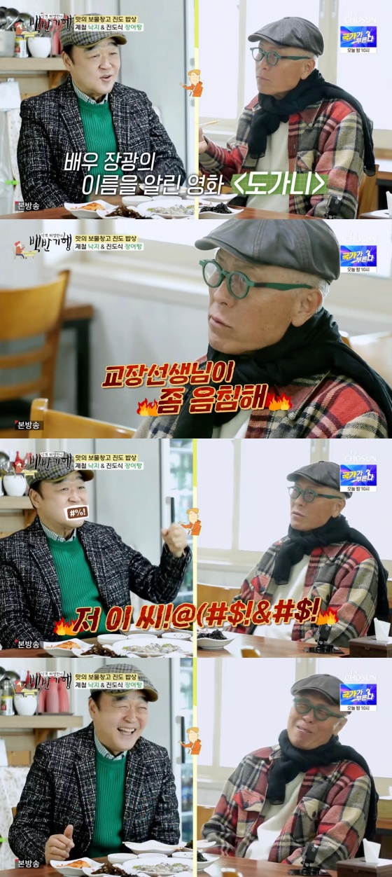 허영만은 "봤다. 교장선생님이 좀 음침했다. 그게 장 선생님이었냐"라며 언성을 높였다. 장광은 "이게 '해야 되나 말아야 되나' 고민했다. 집사람하고 딸은 '이런 작품을 해야 배우로서 역량을 발휘할 수 있다'했다"고 전했다. 허영만은 "그러면 연기를 기가 막히게 한 거다"며 장광을 칭찬했다. 이후 장광이 주변 반응을 전했다. 장광은 "어떤 사람이 와가지고 '귀싸대기 한 대 때리면 안 되겠습니까?'했다"며 폭소했다.