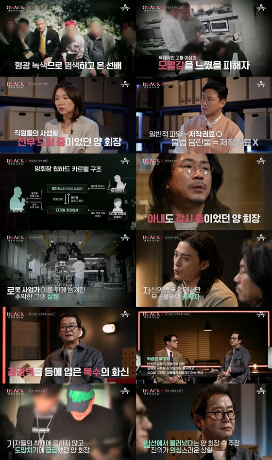 지난 1일 방송된 채널A 범죄다큐스릴러 '블랙2: 영혼파괴자들'(이하 '블랙2')'에서는 웹하드 업계 1, 2위를 다투던 양진호 회장의 갑질에 대해 다뤘다.