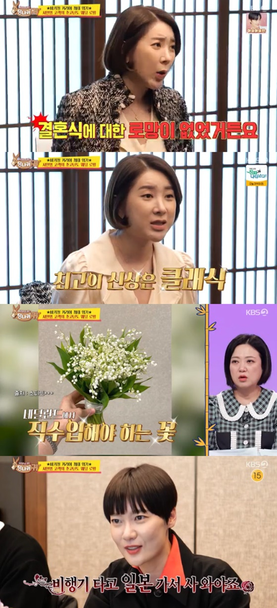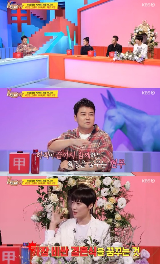 전현무의 결혼 로망도 공개됐다. 전현무는 "저는 스몰웨딩을 하고 싶다. 외국 친구 결혼식을 초대받은 적이 있었는데 이름 적힌 조약돌이 있어야만 입장이 가능했다. 영국 남부 시골 작은 교회에서 100명 정도만 모여서 결혼식을 올렸다. 하객들이 결혼식 끝날 때까지 신랑, 신부와 함께했다"고 말했다.