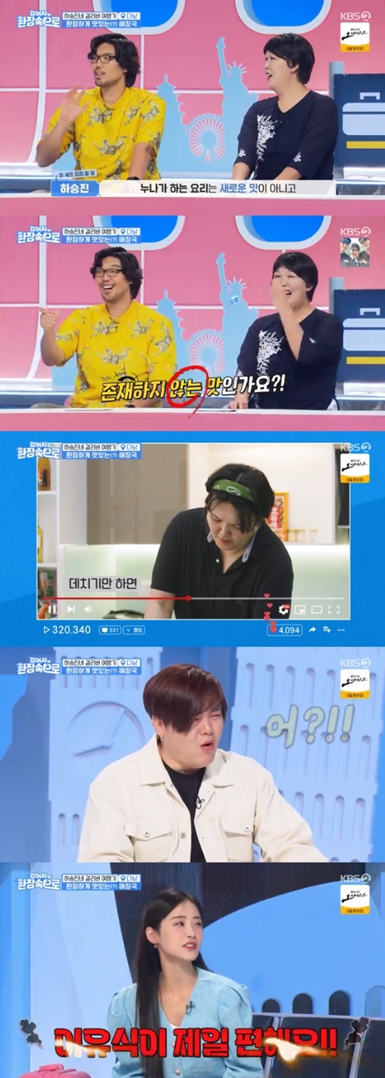 그러나 스튜디오에서 이를 들은 하승진은 "누나가 하는 요리는 새로운 맛이 아니라 그 어느 누구도 맛보지 않은 맛이다. 새로운 맛은 좋은 표현이다"이라고 말했다.