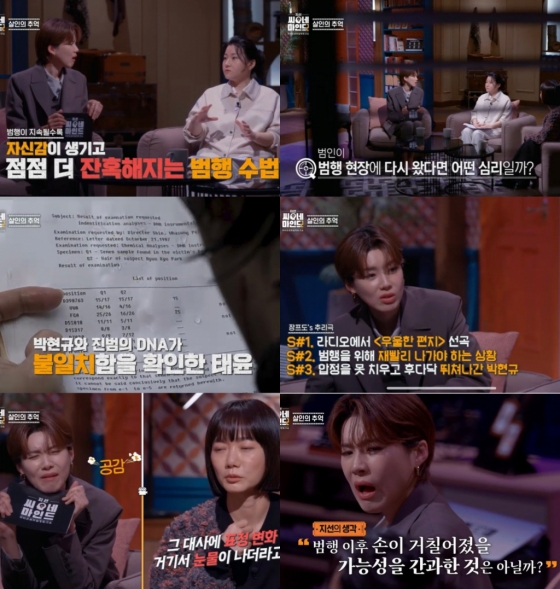 특히 박지선 교수는 '살인의 추억' 에 등장하는 세 명의 용의자 중 사건 현장에서 여성 속옷을 입고 음란행위를 한 조병순(류태호 분)에 주목했다. 그는 "많은 분이 조병순이라는 캐릭터에 주목을 안 한다. 그런데 이춘재가 검거되고 '살인의 추억'을 다시 보면, 조병순의 행동과 이춘재 사이 놀라운 공통점이 있다"라고 운을 뗐다.