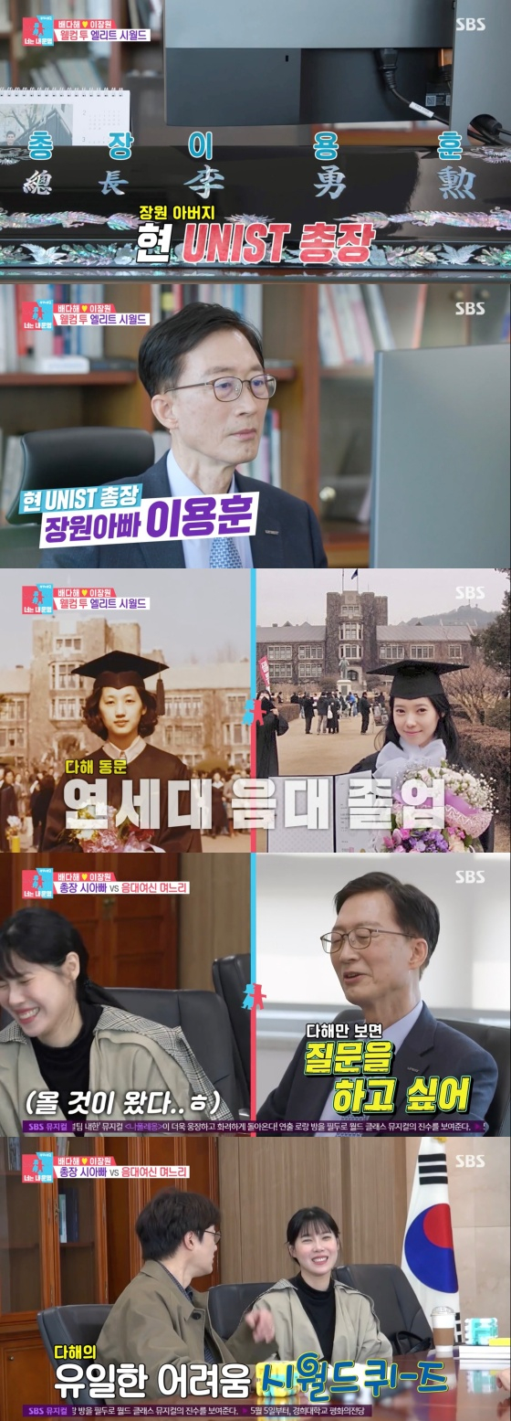 이날 이장원의 아버지는 며느리 배다해에 난이도 높은 퀴즈를 내 배다해를 당황시켰다. 이장원의 어머니는 길어지는 질문에 배다해에 "지루하지?"라고 말해 폭소를 유발했다. 아버지는 배다해에 "마지막으로 퀴즈 하나만 내자. 유니스트가 우리나라에서 1등 하는 게 몇 개 있어. 우리 학교에 아바타가 기가 막힌 게 있거든"라고 자랑했다.