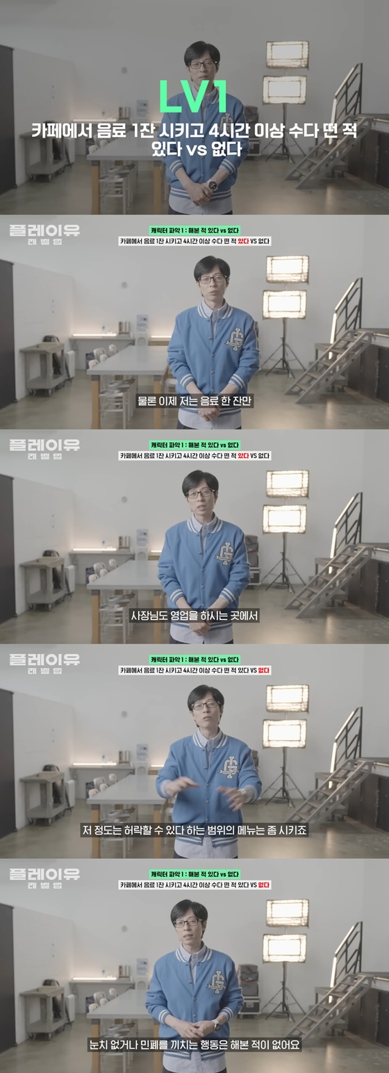 유재석 "카페서 음료 한잔에 4시간? 민폐 행동 해본 적 없어" [플레이유 레벨업]