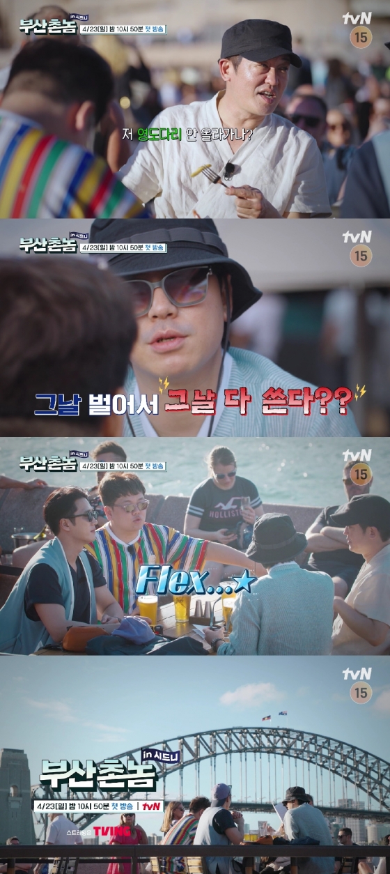 오는 23일 밤 10시 50분에 첫 방송될 tvN '부산촌놈 in 시드니'(연출 류호진, 윤인회)는 부산 출신 4인방 허성태, 이시언, 안보현, 곽준빈(곽튜브)이 호주 워킹 홀리데이를 즐기는 리얼리티 예능 프로그램. 특히 공개된 2차 티저 영상에서는 평화롭고 아름다운 항구도시 시드니에서 함께 시간을 보내는 부산 사나이들의 돈독한 케미가 느껴져 더욱 기대를 모은다.