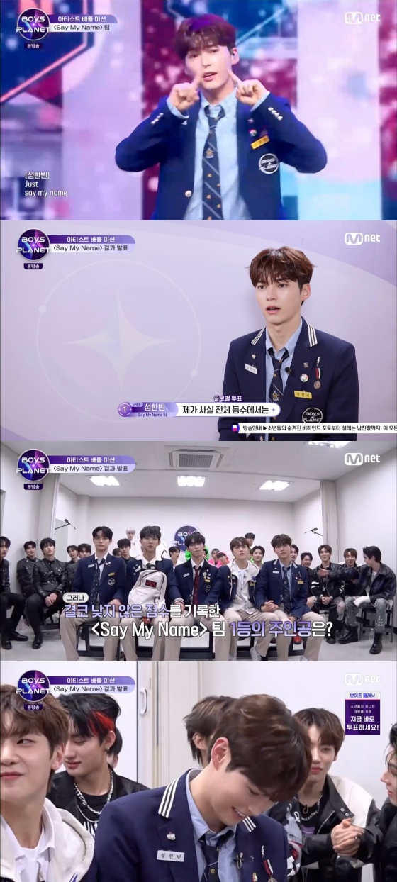 이후 Say My Name팀의 1등 연습생의 점수가 공개됐다. 점수는 826점으로 성한빈이 1등을 차지했다. 성한빈은 "너무 감사하고 '내가 1등이라고?' 얼떨떨하면서 행복했다"며 소감을 전했다.