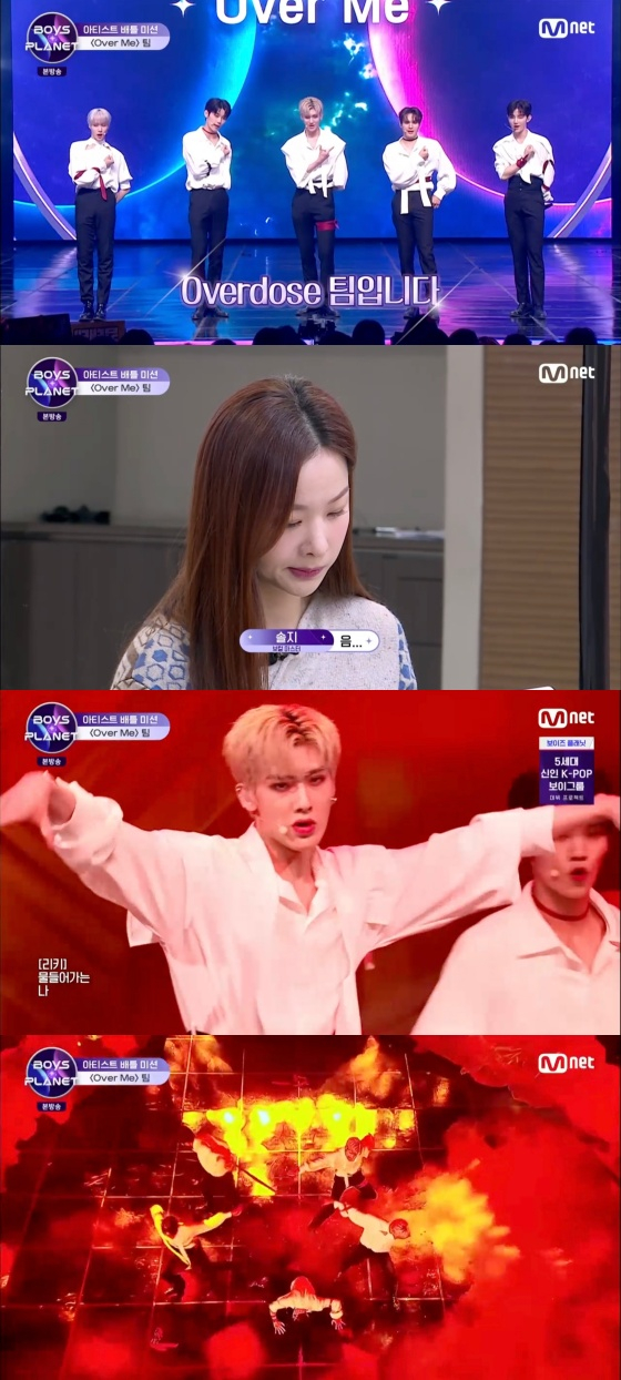 이후 Over Me팀의 무대가 공개됐다. 리키는 치명적인 눈빛과 요염한 몸짓으로 팬들의 마음을 사로잡았다. 킬링파트를 맡은 장하오는 깔끔함 보컬을 선보였다. 랩을 담당한 이정현은 안정감 있는 호흡으로 속사포 랩을 소화했다.