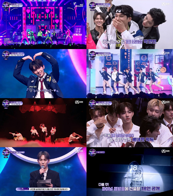 이날 방송에서는 'Switch', 'Say My Name', 'Over Me' 팀의 신곡 무대가 펼쳐졌다. 'Switch' 무대로 스타 크리에이터들을 사로잡은 '꾹꾹이'팀(김태래·나캠든·박한빈·윤종우·장슈아이보·케이타)은 팀원이 다수 변경된 만큼 우여곡절도 겪었지만 끝없는 연습으로 고난을 타개해 갔다. 이들은 오락실을 연상케 하는 세트를 배경으로 5인 각각의 매력이 공존하는 에너제틱한 무대를 꾸며 큰 환호를 받았고, 박한빈이 741점으로 팀 내 1등 연습생으로 꼽혔다.