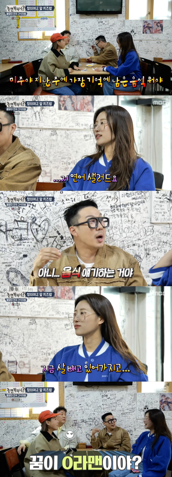 이날 하하, 이미주, 신봉선, 정준하는 쌍문동 정의여고 앞 치즈밥을 먹으러 향했다. 음식이 나오기 전, 정준하는 유일한 소식좌 이미주에 "지난 주에 먹은 것 중에 가장 기억에 남은 음식이 뭐냐"고 물었는데, 이미주는 "연어 샐러드"라 답해 당혹감을 자아냈다.