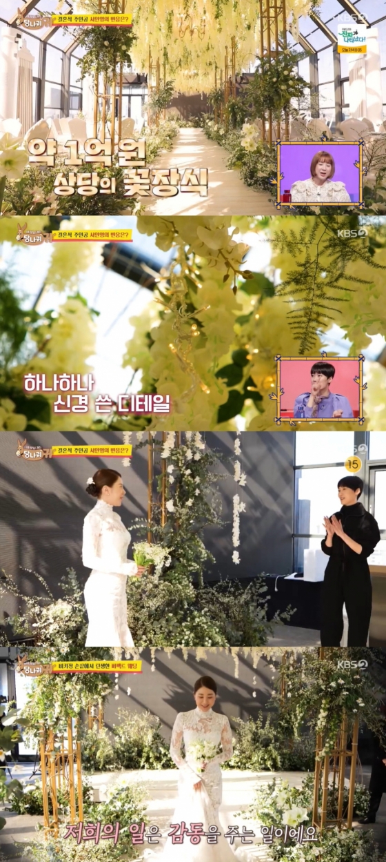 비키정은 "그래서 꽃이 4000단이 들어가는 거다. 100단, 200단으로는 티가 안 난다. 다른 사람들이 주문하고 남은 꽃이 있을까 싶었다"라고 털어놨다.