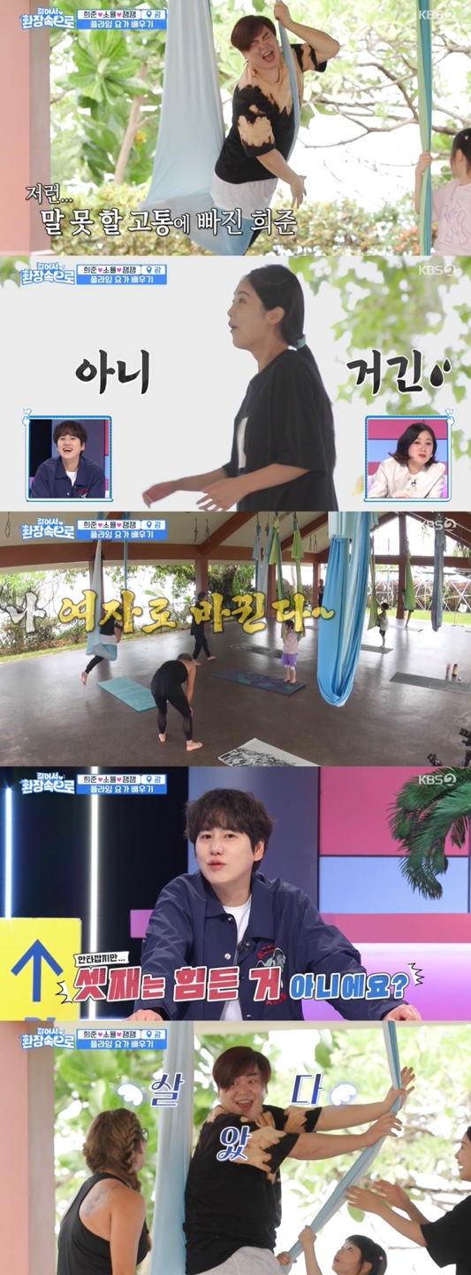 9일 방송된 KBS 2TV '걸어서 환장 속으로'(이하 '걸환장')에서는 문희준♥소율 가족이 괌 여행 중 플라잉 요가를 배우는 장면이 그려졌다.
