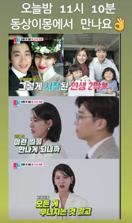 김정화는 10일 "부족하지만 저희 가족의 모습이 공개됩니다~ 오늘 밤 11시 10분 방송이래요~ SBS 에서 합니당. '동상이몽' 많은 시청 부탁드러요. 오늘 밤에 만나요"라는 글과 함께 사진을 게재했다.