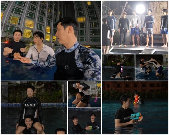 [김수진 스타뉴스 기자] '제1대 트롯맨' 손태진-신성-민수현-김중연-박민수-공훈-에녹과 말레이시아 럭셔리 호텔 수영장에서 화려한 래시가드 패션은 물론 수영 실력까지 공개되는 '호캉스 플렉스'를 즐겼다.