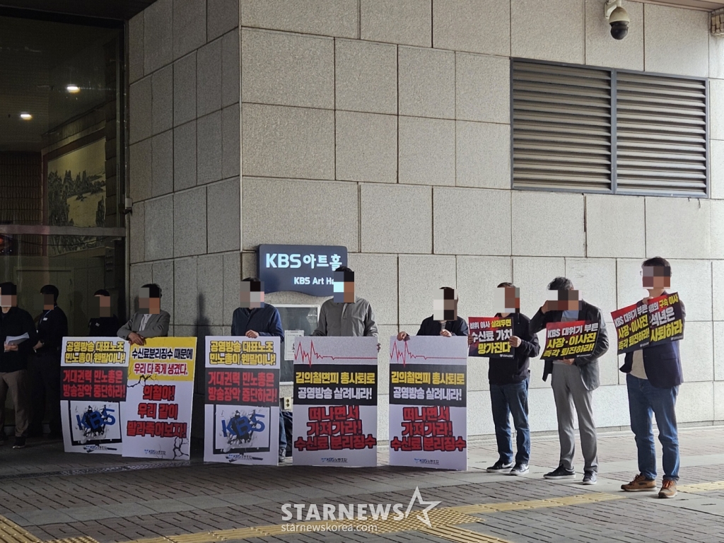 이날 행사가 열리는 KBS 홀 앞에서는 수신료 분리 징수에 대한 강한 반발심을 드러내는 시위를 진행했다. 이번 시위에서는 강한 발언과 고성이 오갔다.