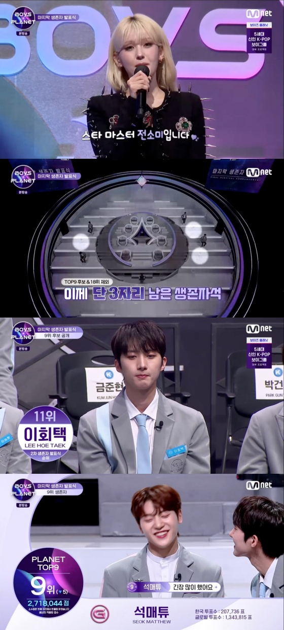 [이빛나리 스타뉴스 인턴기자] '보이즈 플래닛' 3차 생존자 발표식에서 파이널 진출자 18인이 발표됐다.