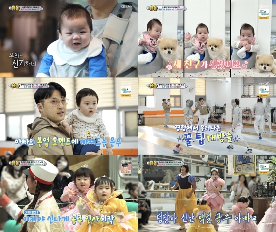 은우는 김준호의 중학교 펜싱 스승인 백정환 코치를 만났다. 은우는 백코치와의 만남에 애교를 폭발시켰다. 손가락 하나를 볼에 콕 집으며 '예쁜 짓' 표정을 짓는가 하면 두 눈을 찡긋 감는 윙크를 발사한 것. 은우의 애교에 랜선 이모들마저 심장을 사르르 녹였다. 김준호는 스승의 은혜에 보답하기 위해 백코치의 현 제자들에게 펜싱 원 포인트 레슨을 했다. 김준호는 단번에 문제점을 파악한 뒤 조언을 해주는가 하면, 직접 시범을 선보였다. 은우는 아빠의 국대 포스에 반한 듯 눈을 동그랗게 뜨고 집중했다. 이후 후배들은 김준호의 코칭이 빛을 발해 전국 대회 단체전에서 우승을 하며 올림픽 금메달리스트 김준호의 실력을 입증했다.