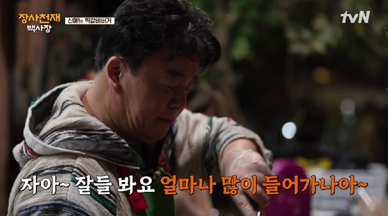 이에 대해 백종원은 "고기를 많이 넣는 것처럼 보이게 하려는 것"이라며 "한 번에 넣는 게 아니라 여러 번에 넣는다는 게 포인트다"고 설명했다.