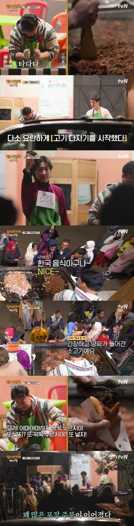 16일 방송된 tvN 예능 프로그램 '장사천재 백사장'에서는 이맘 무슬림 지구에서 모로코 장사 2일 차를 맞이한 백종원, 이장우, 뱀뱀의 모습이 그려졌다.